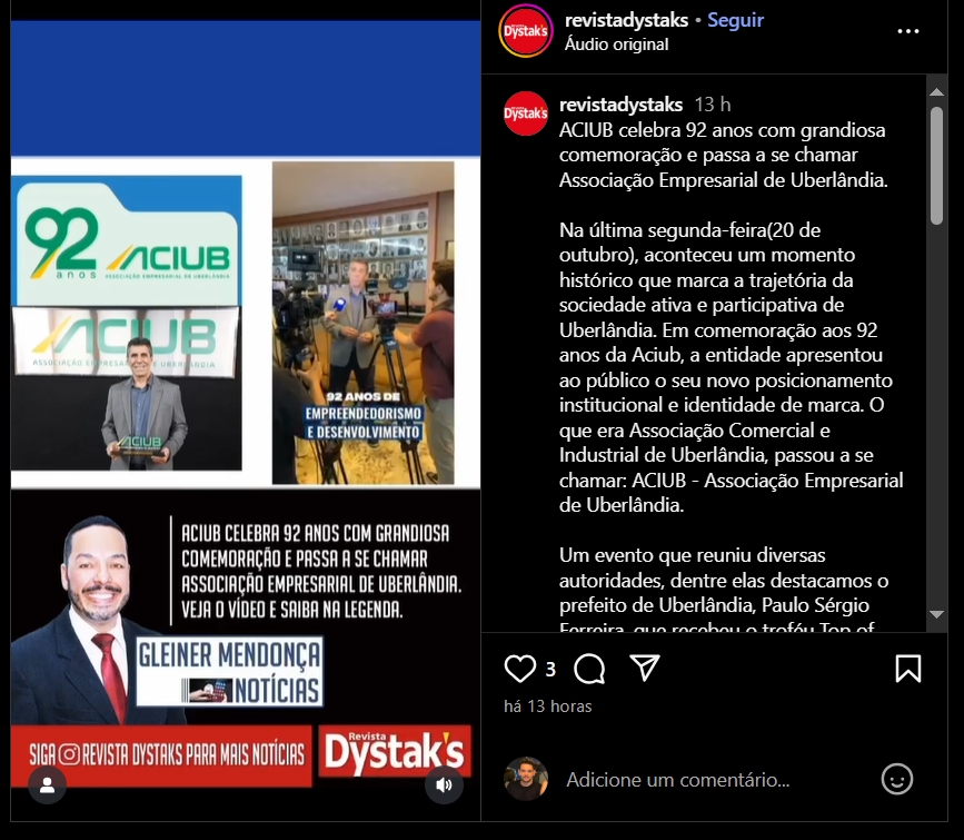 ACIUB celebra 92 anos com grandiosa comemoração e passa a se chamar Associação Empresarial de Uberlândia.
