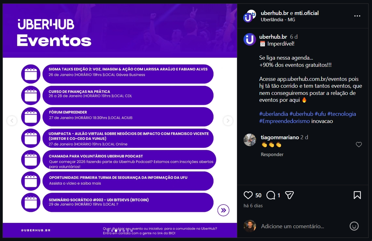 Agenda única de Eventos - Uberhub