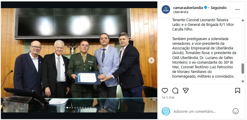 Câmara de Uberlândia concede título honorário com presença da Aciub.