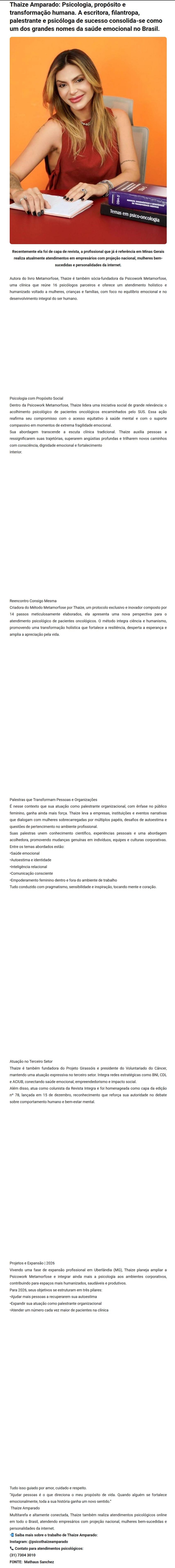 Thaize Amparado: Psicologia, propósito e transformação humana. A escritora, filantropa, palestrante e psicóloga de sucesso consolida-se como um dos g